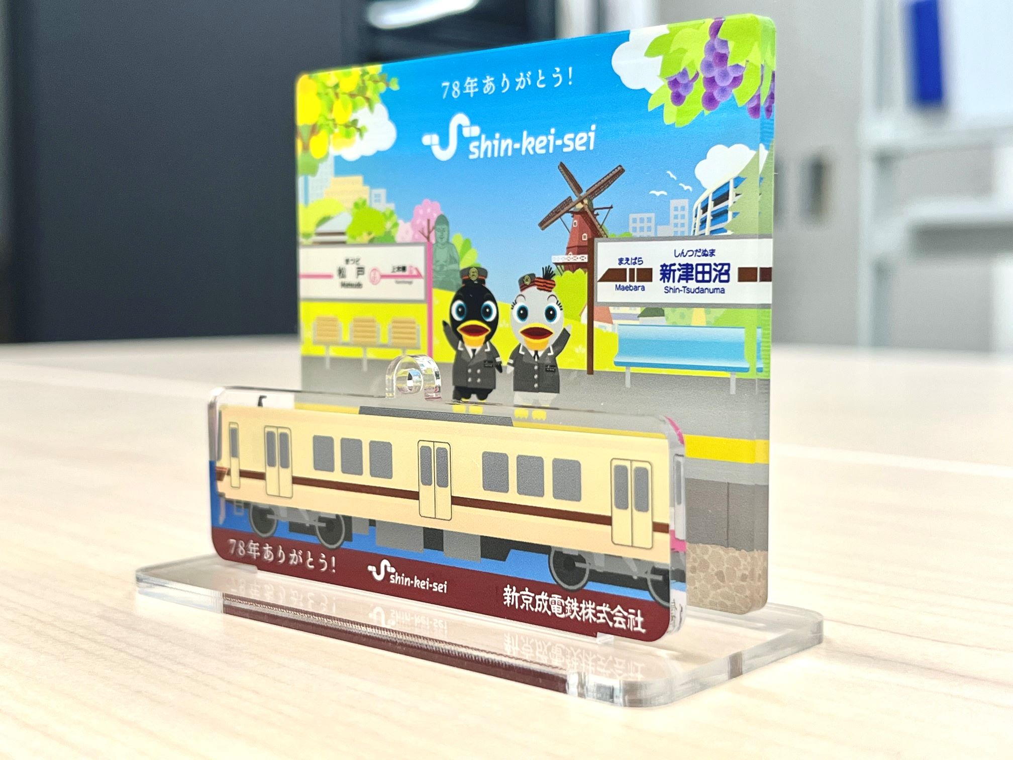 参加には、駅構内にあるセブン-イレブンST各店にてキットの購入が必要で、キットは、「スタンプ台紙付き記念冊子」と「アクリルキーホルダー」がセットされており、「新京成の思い出」をテーマに、これまで新京成電鉄で開催したイベントや車両をスタンプにして、スタンプを全て集めると、達成賞としてアクリルスタンドをお渡ししました。